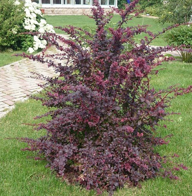 Крупный,быстрорастущий срт с раскидистой кроной до 2 м высотой. Прямые жесткие побеги покрыты одиночными колючками и крупными листьями, Блестящие, темно-красные или пурпурные листья эффектно выглядят весь сезон, не теряя насыщенности цвета, даже если растут в тени. Осенью куст приобретает бледно-красный или оранжевый оттенок.