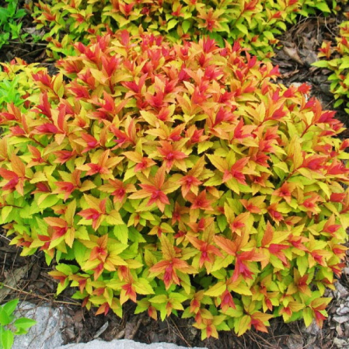 Очень миниатюрный кустарник до 0,6м высотой, ветви дугообразно отклонены. Растет медленно. В течение всего сезона листва меняет свою окраску. При распускании листья окрашены в оранжево-красный цвет, затем становятся зеленовато-желтыми, а осенью приобретают ярко-красный цвет. Цветет конце июня- сентябрь, ярко розовым цветками. Растет на любых почвах. Предпочитает солнечные участки, но выносит и полутень. Морозостойкая, дымо- и газоустойчива. Используется для создания различных ландшафтных композиций.