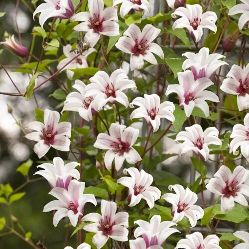 Клематисы этого сорта относятся к группе Техасских, обрезка которых считается максимальной. Клематис Принцесса Кейт имеет мелкие цветочки, которые напоминают колокольчики.