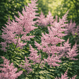 Астильба простолистная «Хенни Графланд» (Hennie Graafland) — это компактный, изящный многолетник (высотой 30–40 см) с блестящими темно-зелеными листьями и нежно-розовыми, поникающими метельчатыми соцветиями. Цветет с июля по август, идеальна для тенистых цветников, рокариев и контейнеров. Предпочитает влажные, плодородные почвы.