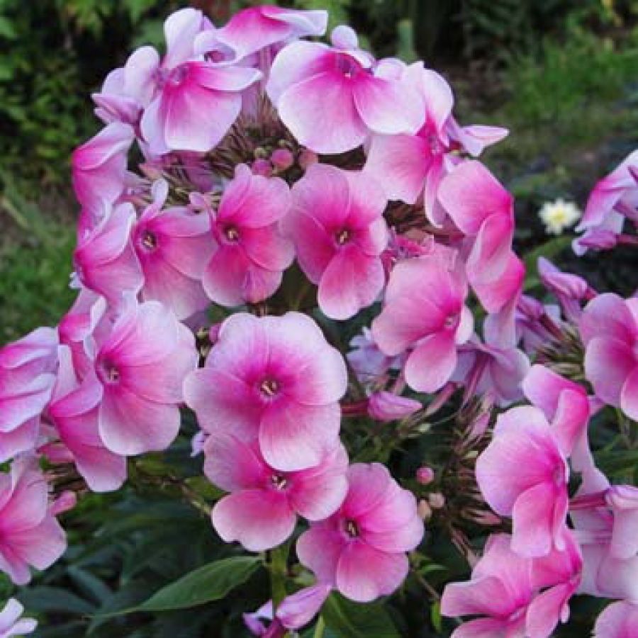 Цветок крупный, броской окраски, колесовидный, клубнично-розового оттенка с более светлыми краями. В жаркую погоду лепестки светлеют. Кусты в высоту достигают 100 см. Хорошо переносит дожди. Соцветие плотное, овально-пирамидальной формы. Цветение очень длительное, в ранние сроки.