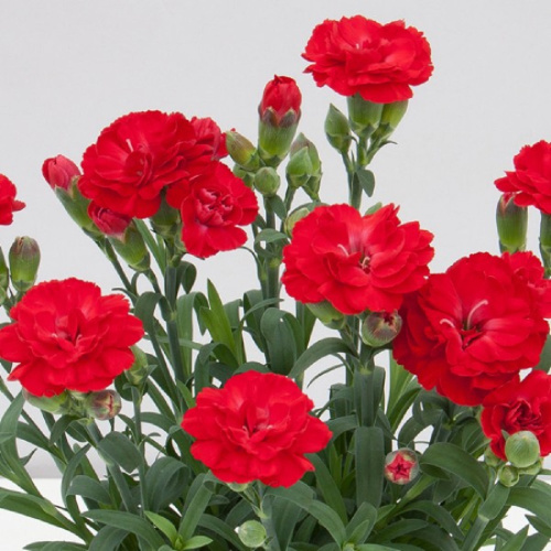 Гвоздика этой серии образует густой, хорошо разветвлённый кустик высотой 20-25 см. Цветки диаметром 3-4 см., ароматные, на прочных цветоносах,ярко красные, лист с сизым напылением. Цветение непрерывное с начала июля до заморозков.Сорт отличается хорошей выносливостью и сильным ветвлением.