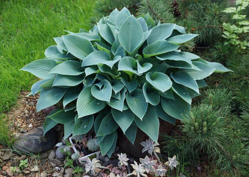 Очень декоративный многолетник с компактным корневищем. Один из самых голубых сортов хост, хорошо держит окраску цвет до середины лета. Формирует красивый симметричный куст высотой до 50 см. Лист среднего размера, очень плотный, копьевидный. Цветки крупные лавандового цвета. Цветёт в июне-июле.Месторасположение: солнце, полутень.Почва: предпочитают слегка кислые, влажные почвы.