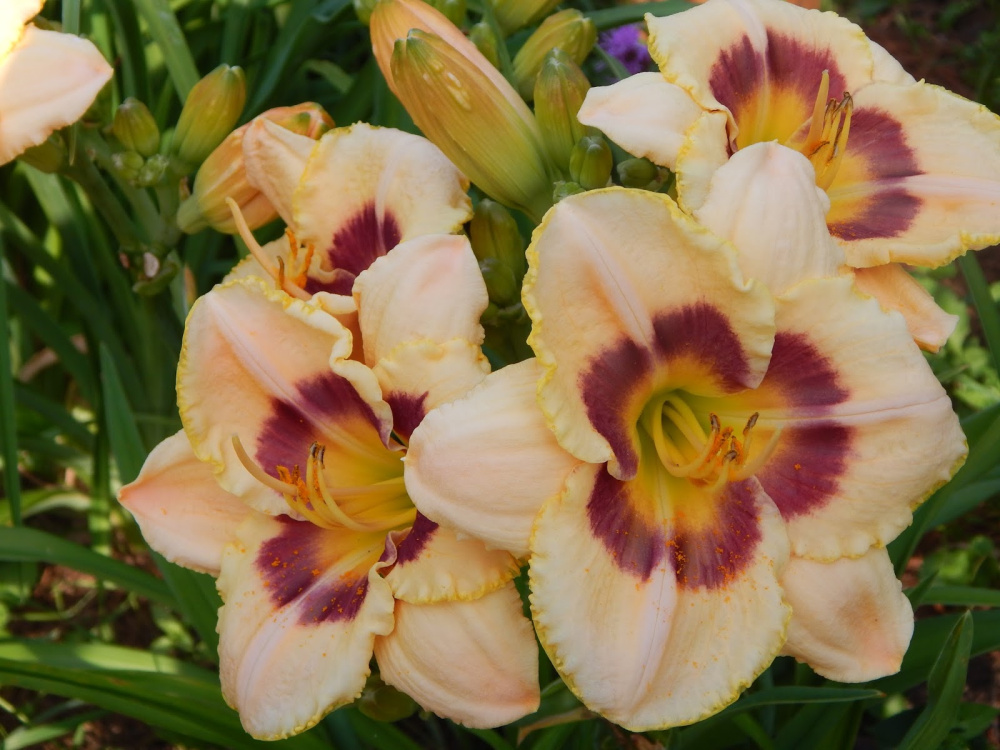 Тетраплоидный сорт, пастельные персиковые лепестки с пурпурным глазом и пурпурно-оранжевой тонкой гофрированной обводкой. Горло желто-зеленое. Цветоносы высотой 80-90 см. Диаметр цветов 13-15 см. Срок цветения очень ранний. Повторноцветущий. Аромата нет. Продолжительное цветение. исключительно зимостойкий, ежегодно и обильно цветёт.