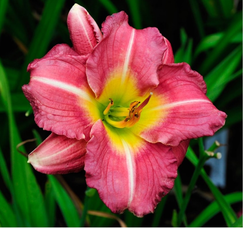 Многочисленные яркие душистые цветки! Насыщенно- розовый цвет лепестков и контрасное желто- зеленое горло, да еще белые полосы из центра. Все это чем- то напоминает нашу Матрешку! Высота 60 см. Диаметр 10см. Растет как на солнце, так и в полутени. Но более массового ошеломительного цветения достигают при посадке на хорошо освещенных местах.