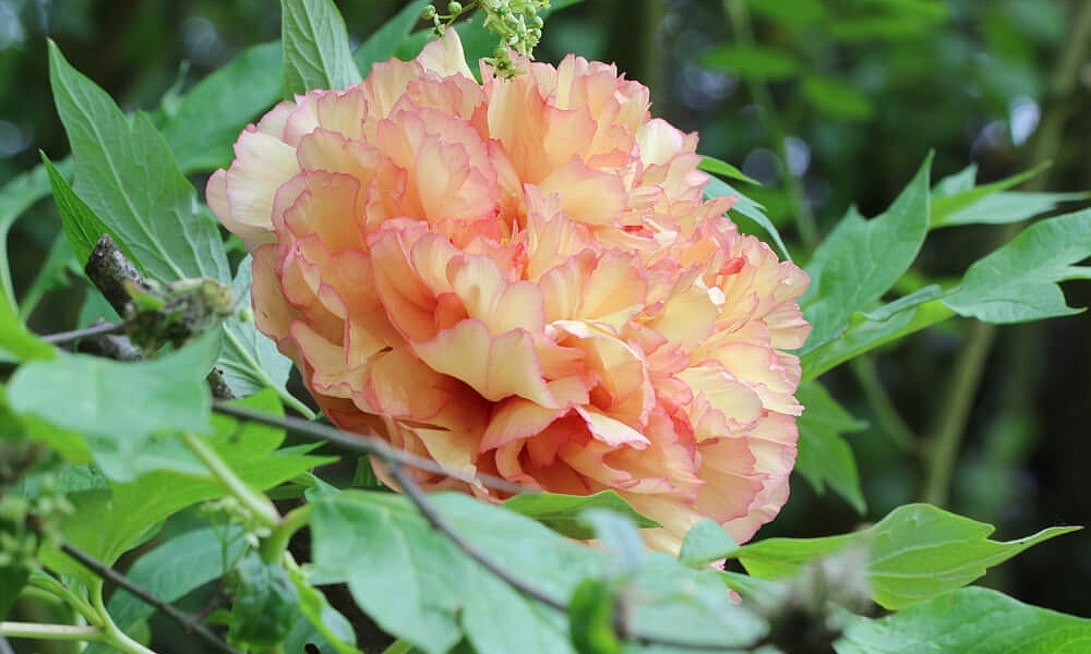 Пион ITOH ито-гибрид "Скрамдидлиапшес" очень компактен и прекрасно сохраняет свою форму благодаря прочным стеблям, которым не требуется опора. Высота куста около 55 см.
