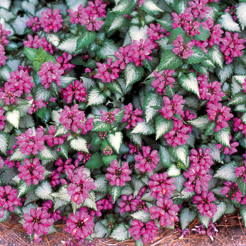 Серебристо-белые листья с зелёным краем с течением времени образуют пышный ковёр, украшенный насыщенно-фиолетовыми, более крупными, чем у других сортов, цветами. Цветение начинается в июне и продолжается всё лето. Высота куртины около 20 см. Растение отлично подойдёт для осветления теневых участков сада. Отлично зимует без укрытия.Месторасположение: полутеньПочва: влажная, умеренно плодородная.Использование: яснотку используют в цветниках, рабатках, миксбордерах, альпийских горках, для декорирования почвы под кустами.