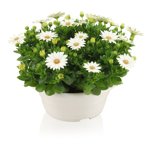 Остеоспермум сорта "Margarita White Spoon" – это компактное, пышное растение, известное своими уникальными, необычными цветками с лепестками оригинальной формы.