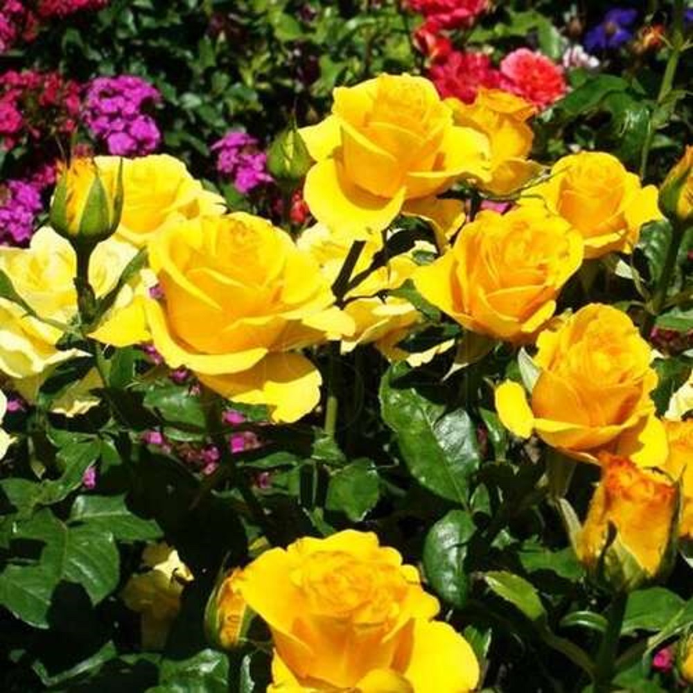 Популярный чайно-гибридный сорт из Нидерландов, отличающийся насыщенно-желтым, почти янтарным цветом с оранжевым оттенком. Славится бокаловидными махровыми цветками (до 10-15 см) с плотными лепестками, которые долго стоят в срезке (10–14 дней). Кусты компактные (60-120 см), цветут обильно и повторно, устойчивы к болезням.