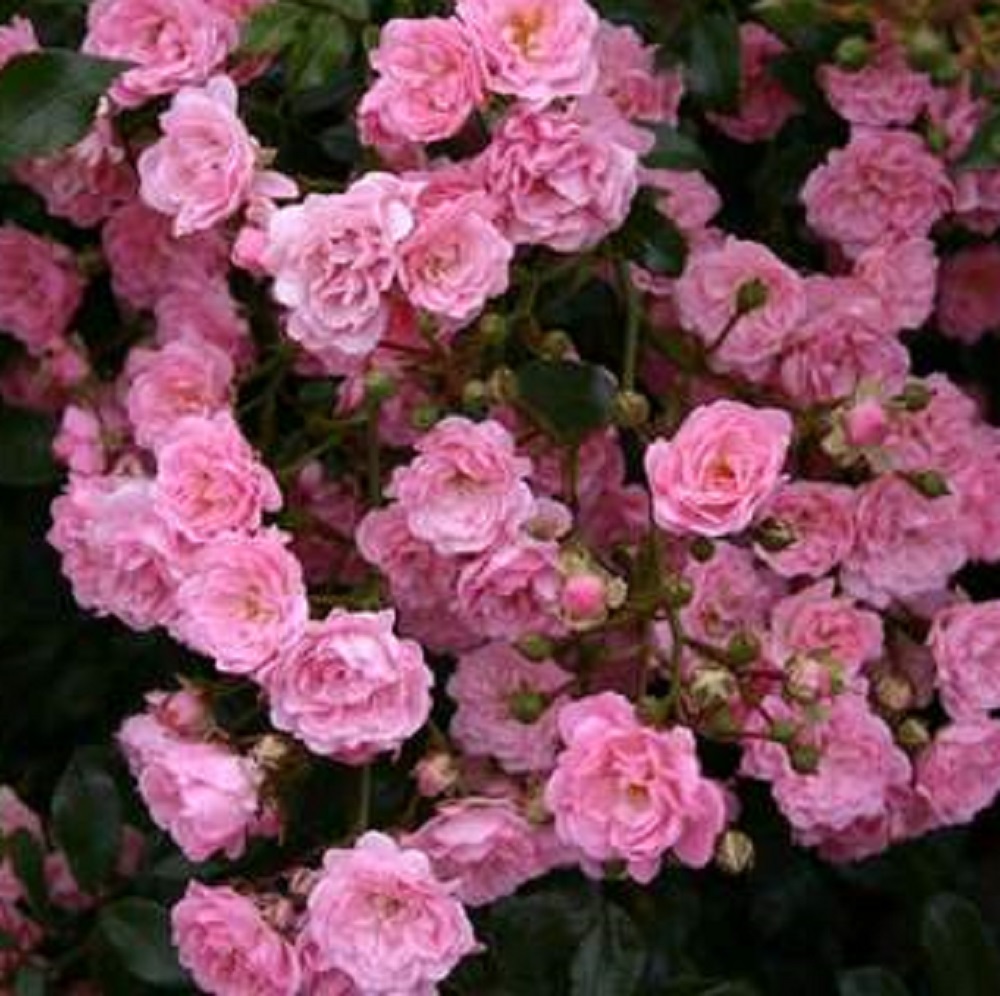 Популярный почвопокровный сорт (Harkness, 1979) с обильным цветением, формирующий раскидистые кусты высотой 40–60 см. Отличается мелкими (3–4 см) ярко-розовыми махровыми цветами, собранными в крупные кисти по 10–20 штук. Сорт морозостойкий (зона 4), непрерывно цветущий, неприхотливый и устойчивый к болезням.
