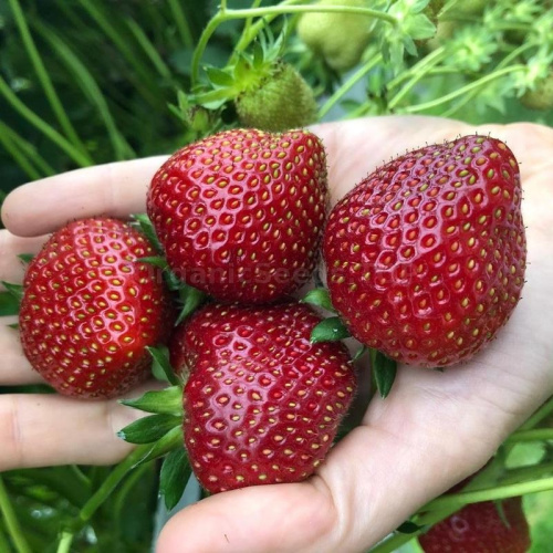 Клубника «Сирия» – сорт среднераннего срока созревания неремонтантный, с высоко товарными темно-красными ягодами правильной конусовидной формы. Ещё этот сорт характеризуется потрясающим фруктово-земляничным ароматом. Широко распространен в фермерских хозяйствах, выращивается в открытом грунте, пленочных, стеклянных теплицах. Кусты высотой 25-35 см среднераскидистые. Цветоносы длиной 15-18 см, полегающие под тяжестью урожая. Количество завязей на одном цветоносе 7-12 штук. Ягоды конусовидные, на вершине слегка затуплены или раздвоены. Окраска в полной зрелости от темно-красной до вишневой. Масса ягод 35-40 г. Средняя урожайность с одного куста 1 кг, минимальная – 0,7 кг (характерна для дачных участков), максимальная – 1,3 кг (в производственных условиях).
