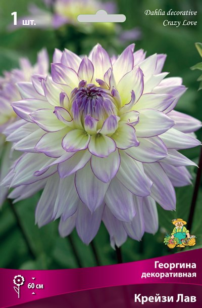 Крейзи Лав - высота растения 60 см. Цветок диаметром 15 см, белый со светло-сиреневыми кончиками и тонкой сиреневой каймой.
