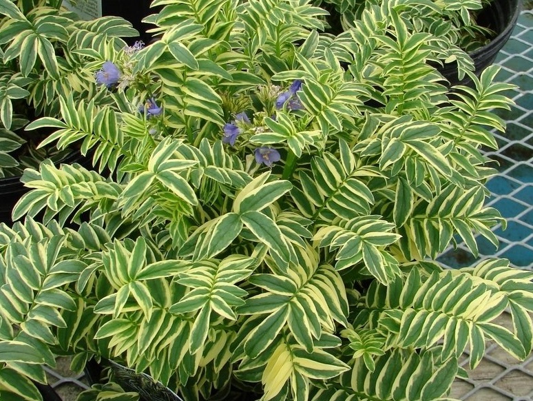 Сорт "Brise d'Anjou" — великолепный многолетник, имеющий вариегатные листья, зеленые с кремовой каймой. К концу лета кайма розовеет.