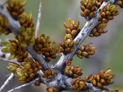 Мужской бесплодный сорт-опылитель. Бесплодный. Растение сильнорослое с прочной кроной. Побеги без колючек, характерны крупные почки и укороченные междоузлия. Зимостойкость высокая, цветковые почки легко переносят морозы. Цветение продолжительное с большим количеством жизнеспособной пыльцы. Сорт легко размножается черенкованием. Любит солнечные места, хорошо растет на обеспеченных влагой плодородных супесчаных и суглинистых почвах. К вредителям и болезням устойчив.Определить пол облепихи можно, когда у нее еще нет листьев, по ее почкам, весной, осенью или зимой, особенно это актуально для мужского растения, потому что женское растение можно опознать летом по плодам и цветам.