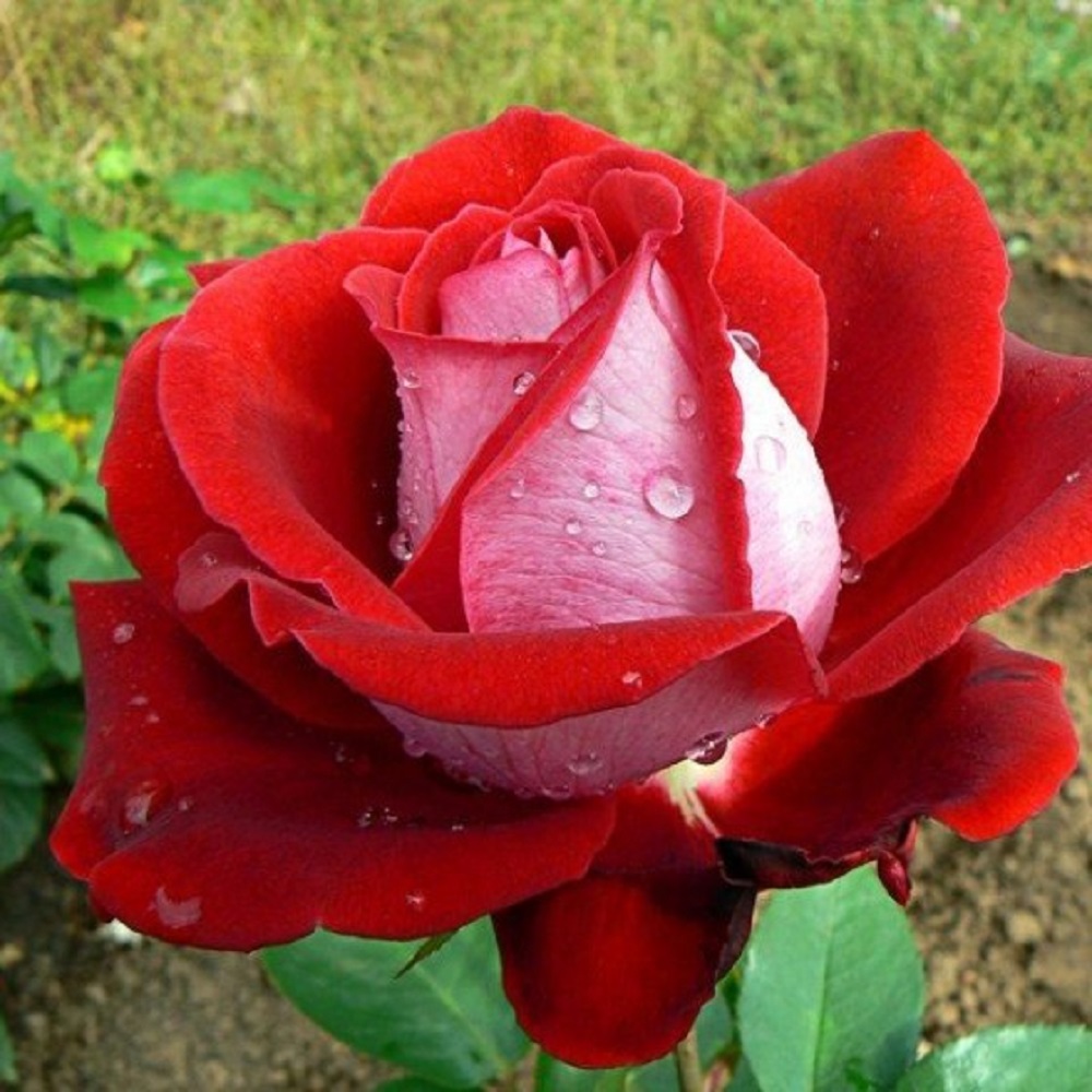 Это чайно-гибридный сорт с крупными двухцветными цветками: снаружи лепестки алые, а с обратной стороны — белые. Она ценится за красивый бокаловидный бутон (до 12 см в диаметре), повторное цветение, устойчивость к болезням и дождю, а также длительное стояние в срезке. Куст прямостоячий, высотой 80-100 см, с глянцевой, устойчивой к болезням листвой и небольшим количеством шипов.