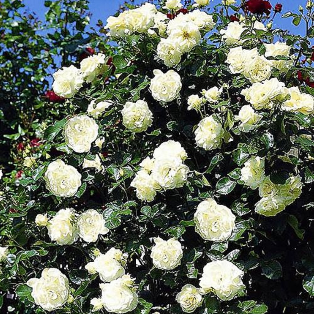 Представляет собой исключительную клеттеррозу с огромными, Элегантно наполненными бутонами чисто-белого цвета. Эта роза отличается своими крупными, густомахровыми цветками, напоминающими по форме крупноцветковые чайно-гибридные розы.